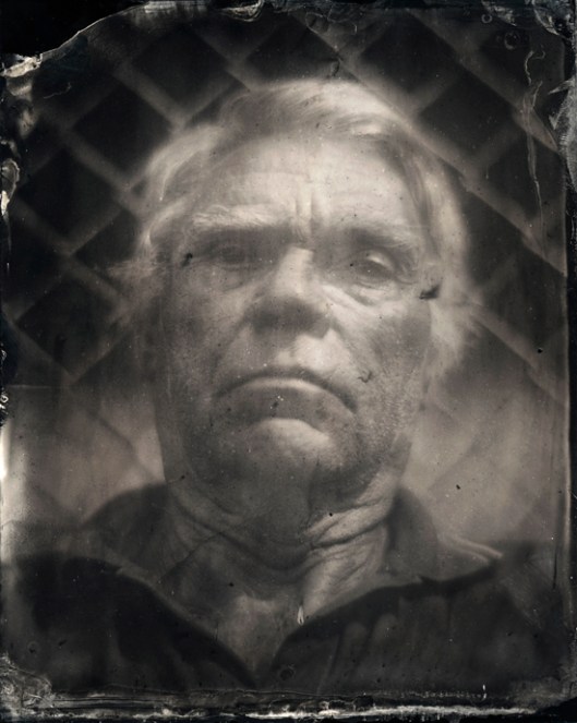 Three years ago, I visited my parents in West Virginia and convinced them to sit for a series of wet plate collodion portraits. I saw my mom staring at a plate I had just made of Dad (who everybody calls, “Junior”). I told Mom it has been said that wet plate collodion reveals the true character of the subject. She looked at the image of Dad, then at him, then back at the image. She laughed and said, “Junior, you’re going to hell! You look like a serial killer!” According to Mom, Dad has a lot of praying to do.
