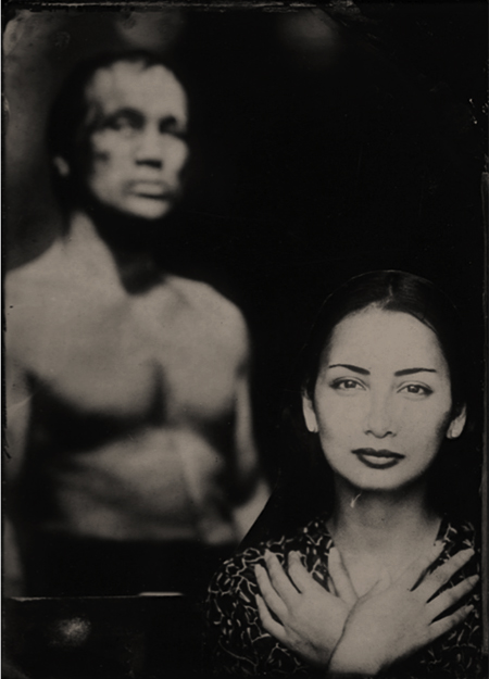 This is a wet plate collodion image is of my adopted sister, Anna, and her boxer fiancé. She is a professional model and has appeared in multiple major publications. Some of you may recognize her. Unfortunately, my sister was involved in a serious automobile accident in 2001. The accident left her with severe facial lacerations and a partially paralyzed lower body.
