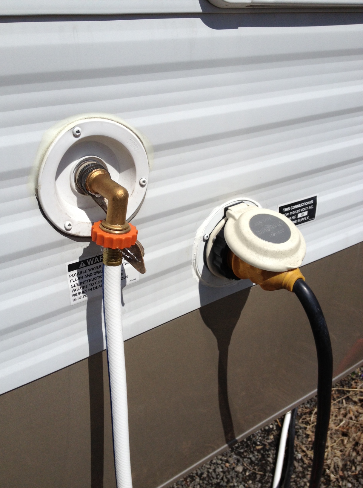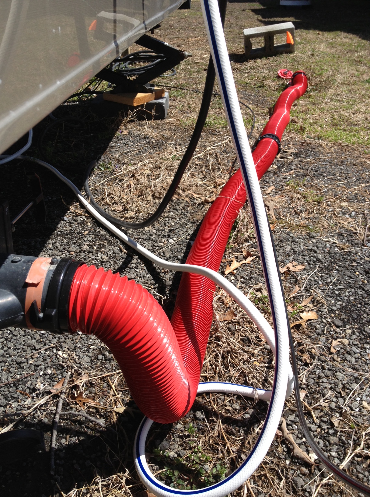 … and finally (perhaps most importantly), your, um human waste products via an external expandable hose. (OK, to be more precise, the latter is internally produced within the body’s digestive system, then transferred via human exit port (supplied at birth) into a storage tank below the camper floor. But I digress.)