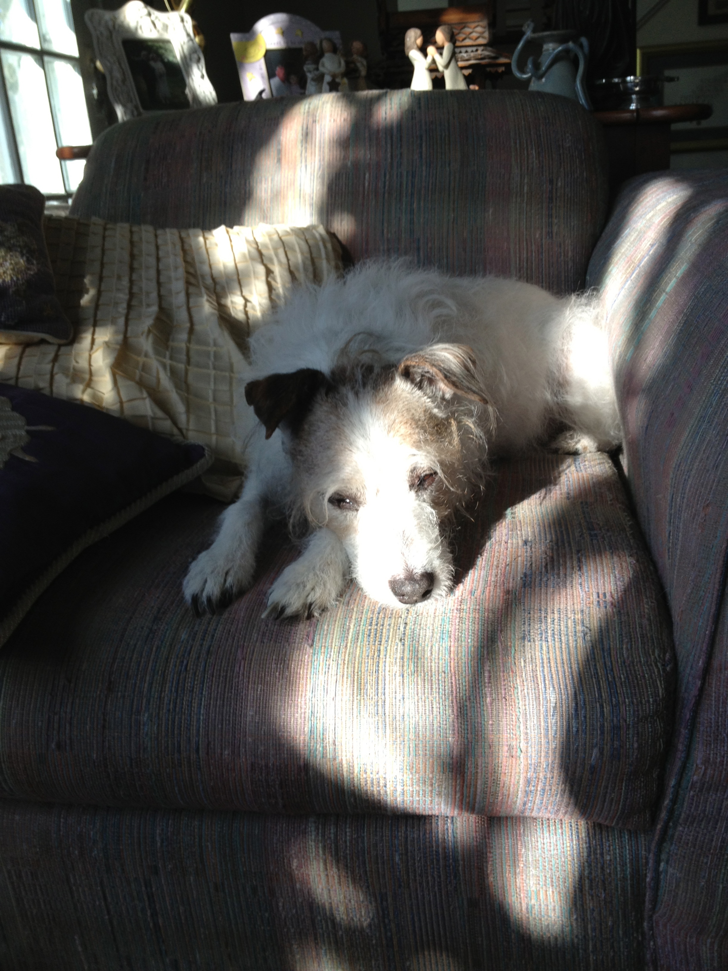 Recently, I stayed at a friend’s house for a week to care for her Jack Russell terriers. The dogs are sweet. The older one (Phoebe) slept the days away in her favorite chair most of the week, but even then was on full-alert.