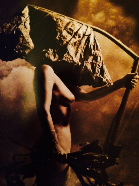Close-up of Chlorofemina, Neque, 2006 (Choloroform, Inkjet on handmade Gampi paper with wax and blood 53″ x 33″)